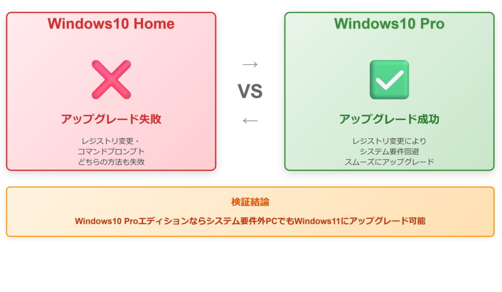 Homeでは不可でも、Proならシステム要件未達でもアップグレード可能なケースがある