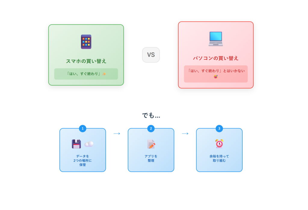 パソコンの買い替えはスマホのように「すぐ終わり」ではありません。
