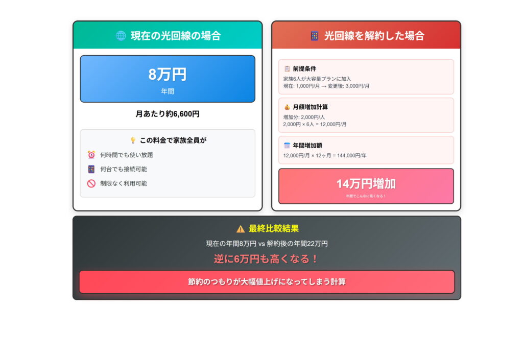 💡 「光回線を解約してスマホ回線に一本化しよう」と考えている方は、この記事をぜひ参考に、冷静に計算してみてください。
