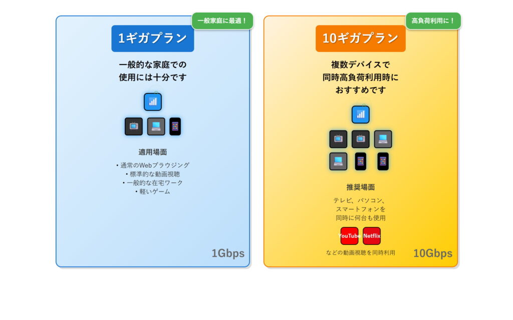 10ギガは同時に大量の動画やゲームを楽しむ家庭向けです。