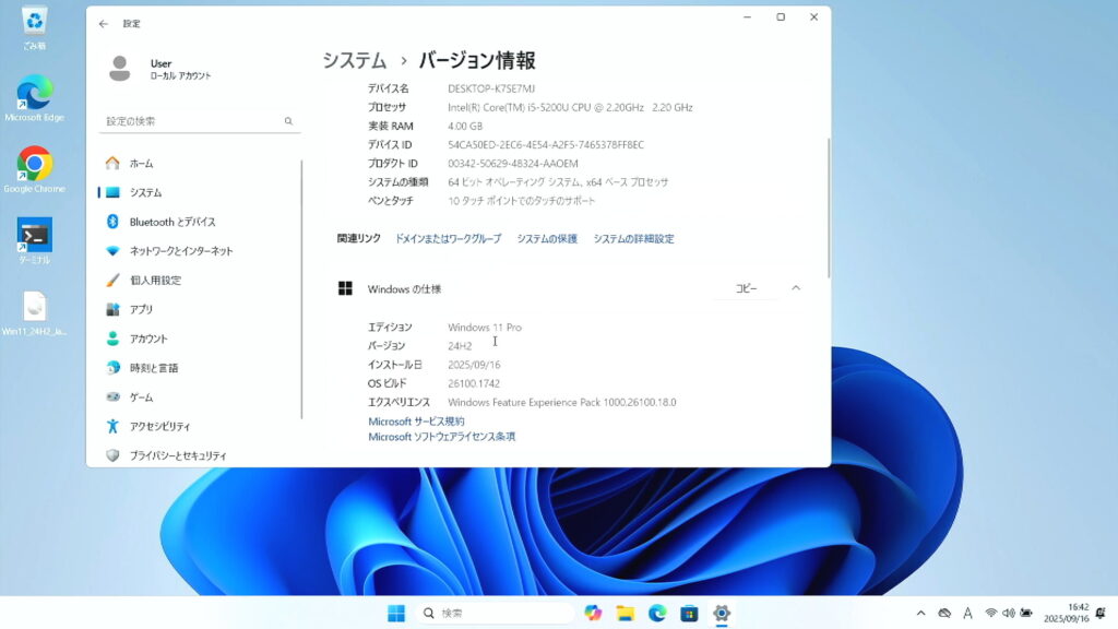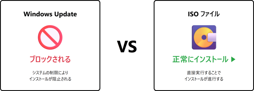 公式要件を満たしていないPCでも、ISOファイルを使えば24H2・25H2へ移行可能