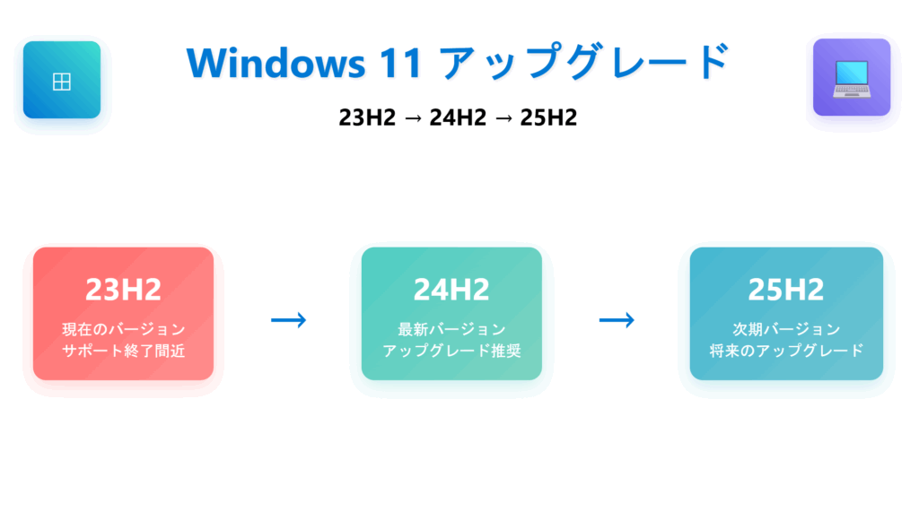 そのため、23H2ユーザーは次のバージョンである 24H2、さらに 25H2 への移行を検討する必要があります。