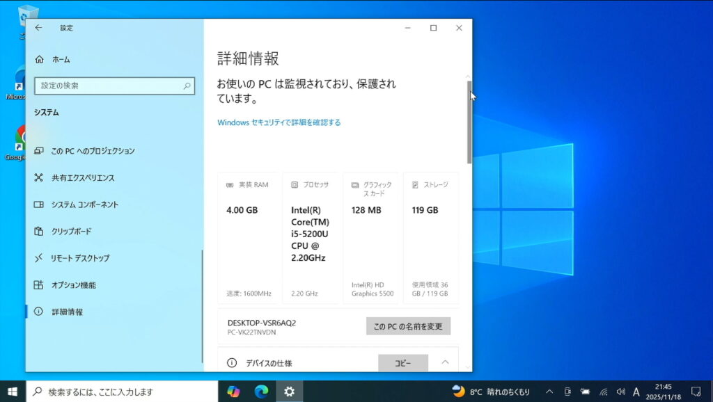 → Windows11公式要件の「第8世代以降」には遠く及ばない