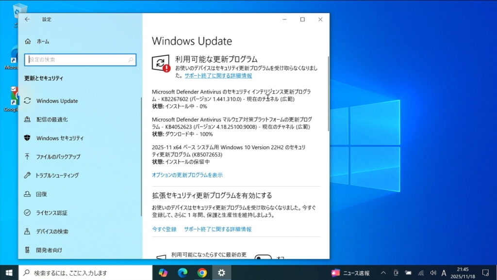 「お使いのデバイスはセキュリティ更新プログラムを受け取らなくなりました」