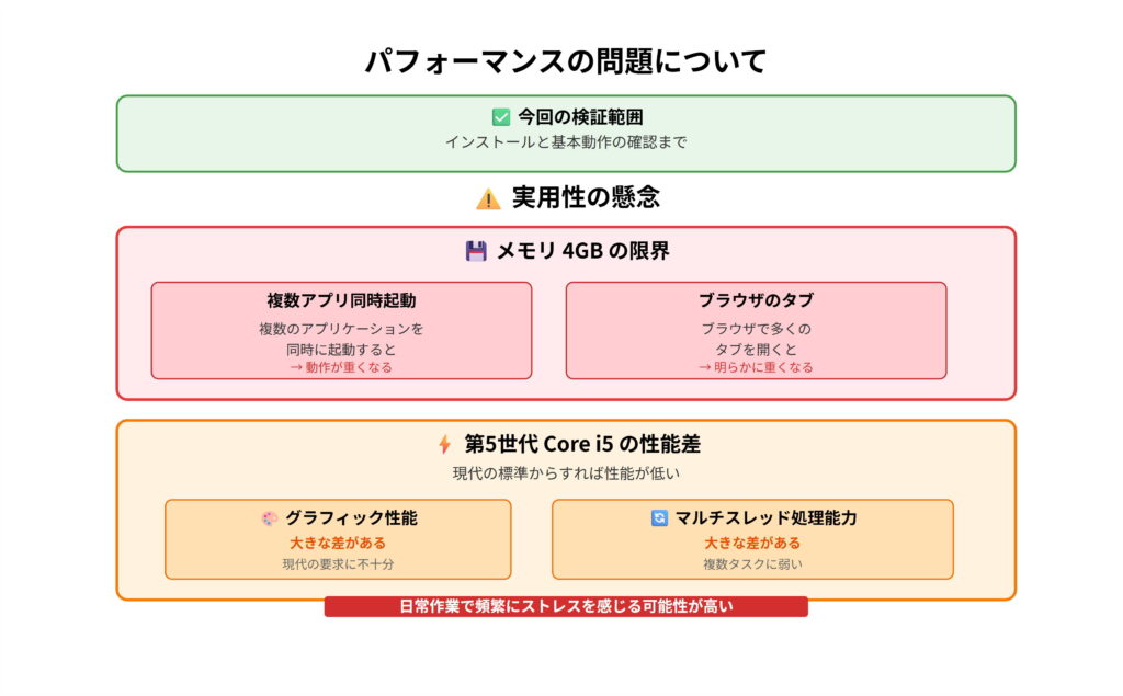 しかし、これはあくまで“動く”だけであり、快適とは言えません。