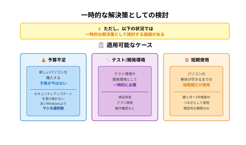 一時的に使うならアリですが、本格的にWindows11を使いたいなら