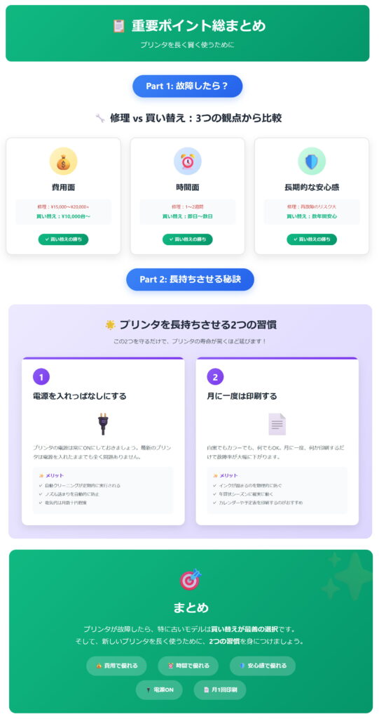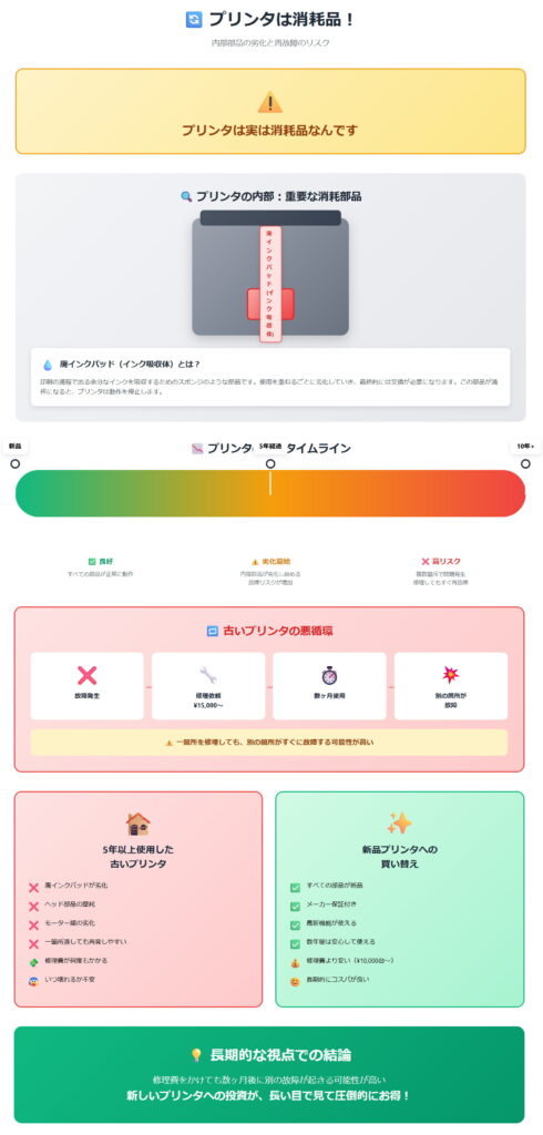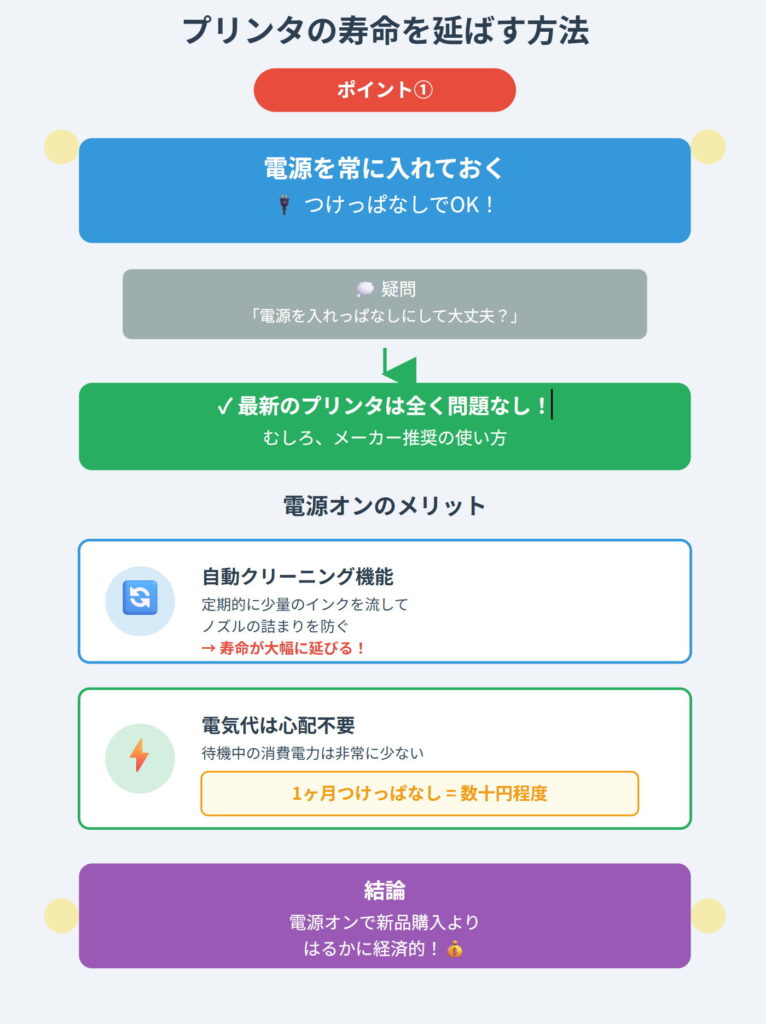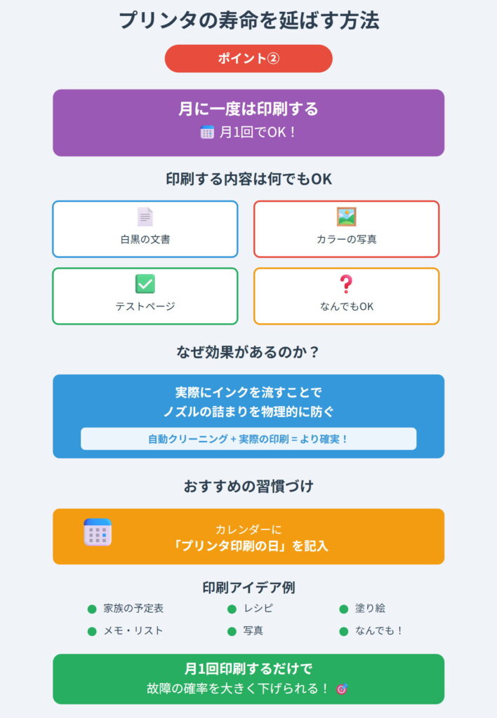 この2つを実践するだけで、プリンタの寿命は大きく延びます。