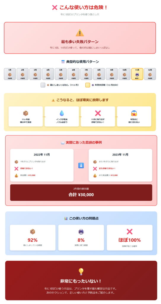 年に1回しか使わないプリンタが壊れる理由はシンプルで、