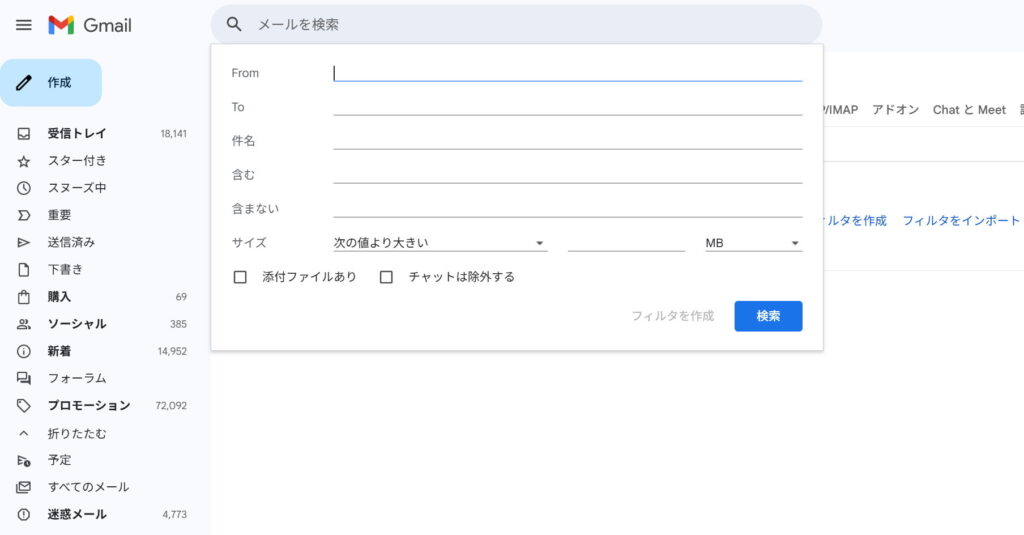 大量の広告メールがすべて受信ボックスに流れ込んできます。