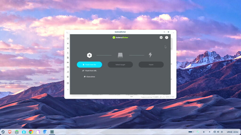 Balena Etcherの画面は非常にシンプルで、操作は3ステップです。