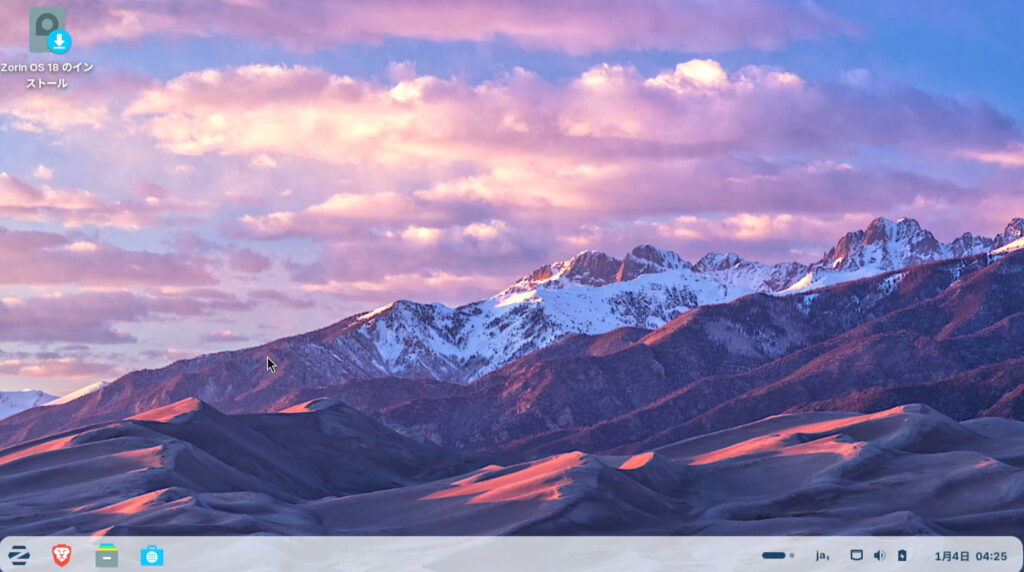 数十秒後、ZorinOSのデスクトップが表示されます。 これはライブ環境と呼ばれ、インストールせずに動作確認ができます。