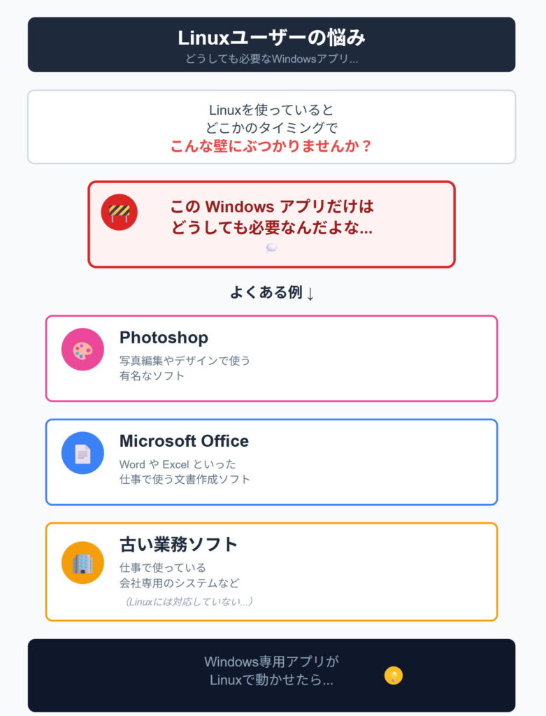 Linuxで必ずぶつかる「Windowsアプリの壁」