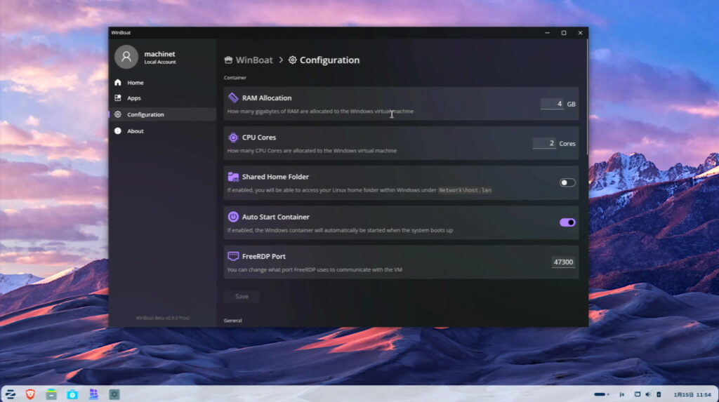 • 仮想Windows:Windows 10 Pro(Winboat)