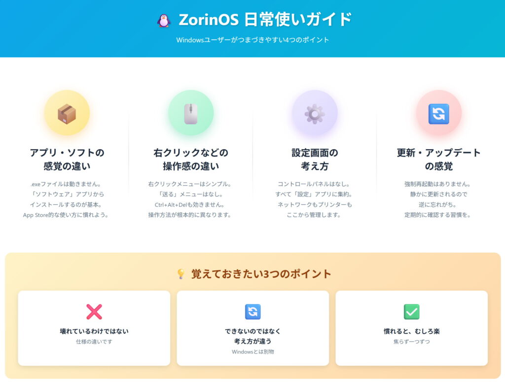 今回は、ZorinOSを日常使いしていて多くの人がつまずくポイントをまとめていきます。