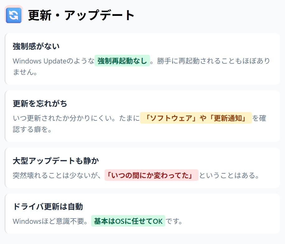 たまにソフトウェアや更新通知を確認する、この習慣をつけると安心です。