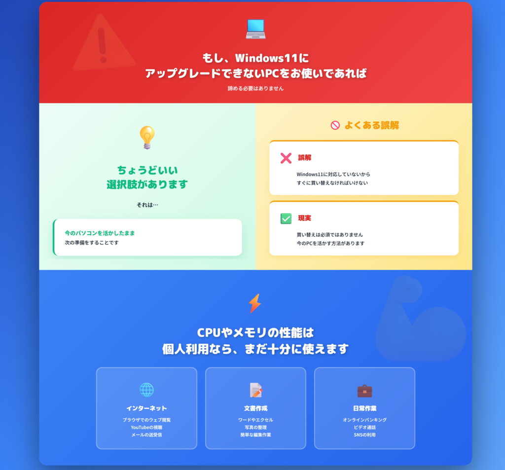 個人利用であれば、まだ十分使える性能のパソコンは多くあります。