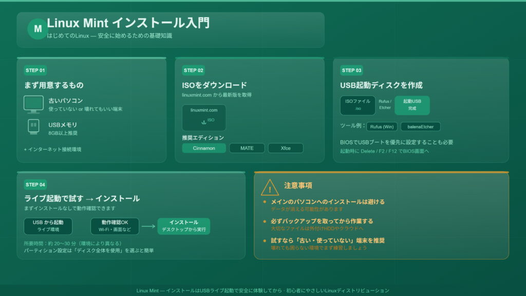 最初に、Linux Mintのインストール手順を簡単に解説します。