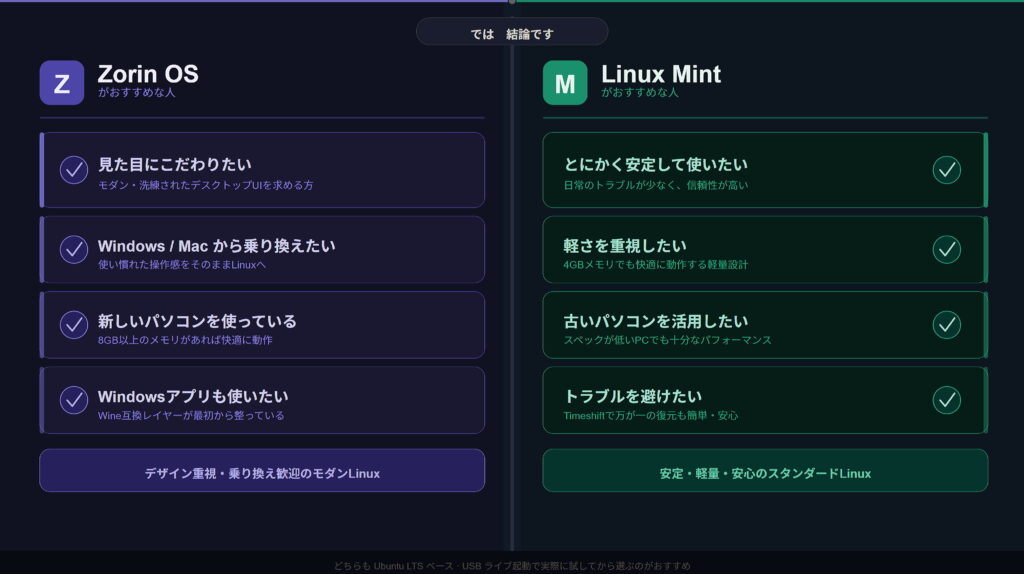 Zorin OSとLinux Mint、日常使いに適しているのはどっちか?